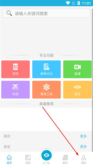 1、在惟視眼科app首頁(yè),點(diǎn)擊底部的我的選項(xiàng)。