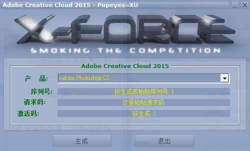 2.開啟xf-adobecc.exe注冊機(jī),生成序列號(先別關(guān)注冊機(jī)后面有用)。