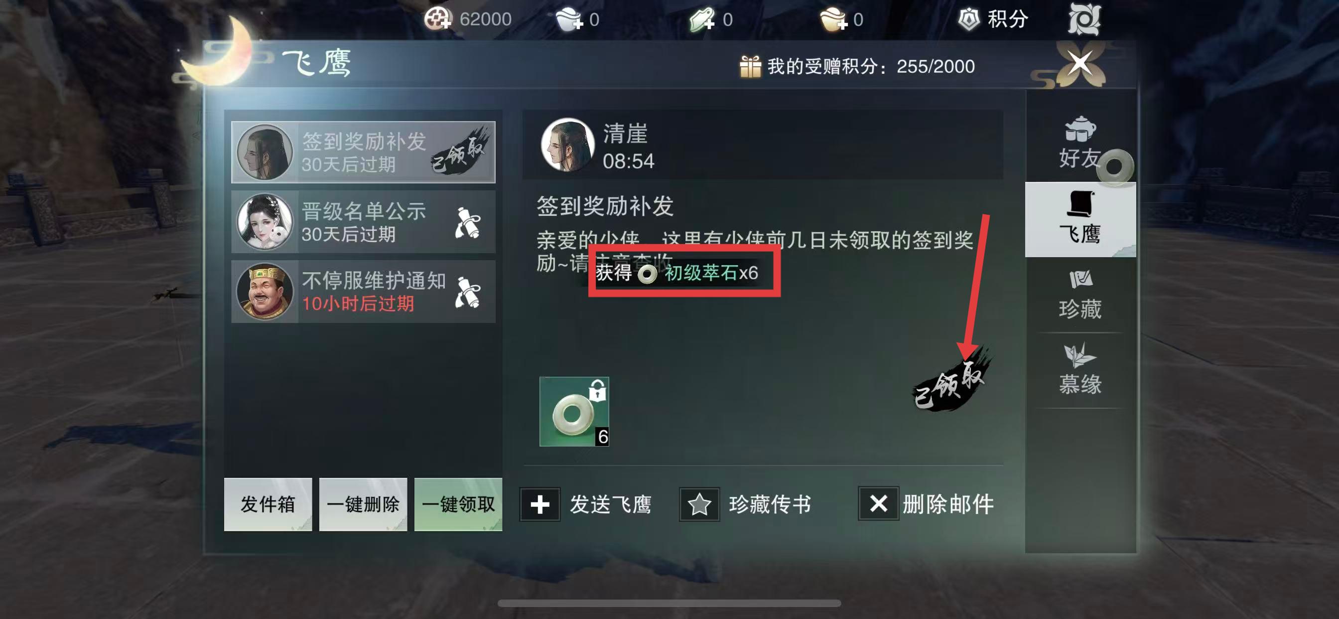 4、顯示獲得郵件里的物品,已領(lǐng)取則表示這個(gè)郵件的物品已經(jīng)領(lǐng)取了。
