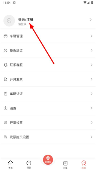 2、在我的頁面,找到登錄注冊選項(xiàng)并點(diǎn)擊,進(jìn)入增城泊車的登錄操作界面。