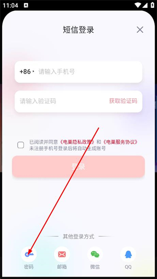2、在彈出的登錄頁面中,找到并點擊下方密碼選項。