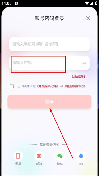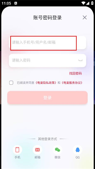 3、在賬號密碼登錄頁面,輸入手機號/用戶名/郵箱。