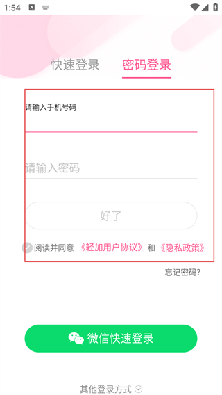 3、輸入手機號碼、密碼,勾選用戶協(xié)議,即可完成賬號登錄。