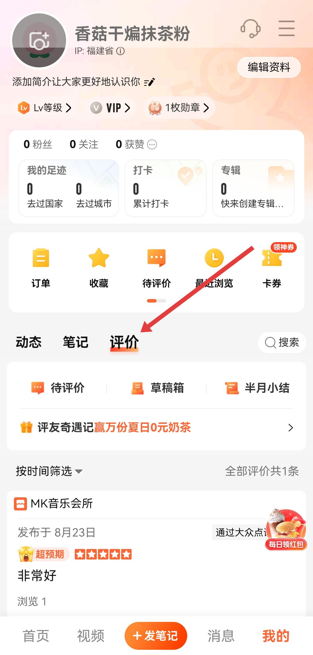 1、進(jìn)入大眾點(diǎn)評(píng)APP的我的頁(yè)面,點(diǎn)擊下面評(píng)價(jià)的標(biāo)簽,然后找到我們需要?jiǎng)h除的點(diǎn)評(píng)。