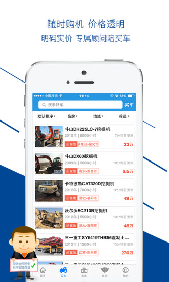在線寄售,免費帶看,全國地面網(wǎng)絡,超過 300 名鐵甲管家竭盡全力幫助用戶買到價格合適、性能優(yōu)質的二手挖機、壓路機等設備,幫助賣家快速賣個公平價,買、賣流程全透明,無價差的更放心。