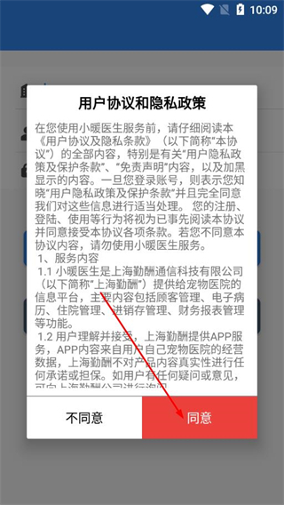 1、打開小暖醫(yī)生app后,在彈出的用戶協(xié)議與隱私政策彈窗中,點擊同意。