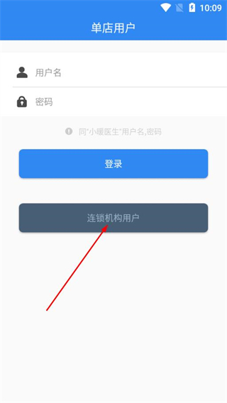 2、在登錄頁面選擇連鎖機構用戶選項,切換到連鎖機構用戶的登錄界面。