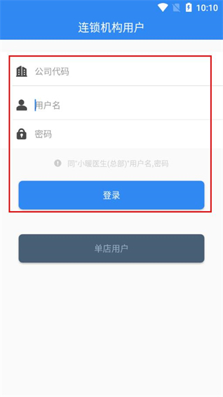 3、在連鎖機構用戶登錄頁面,依次填寫公司代碼、用戶名、密碼,完成后點擊登錄。