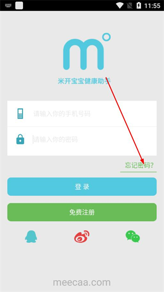 1、在米開寶寶app登錄頁,點擊忘記密碼選項。