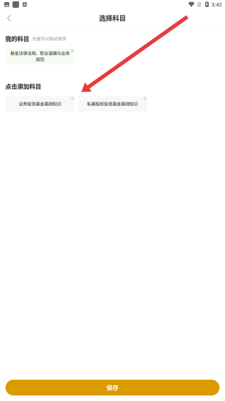 3、在選擇科目界面,通過(guò)點(diǎn)擊添加新科目或刪除原有科目,達(dá)成學(xué)習(xí)科目的切換效果,靈活調(diào)控備考內(nèi)容方向。