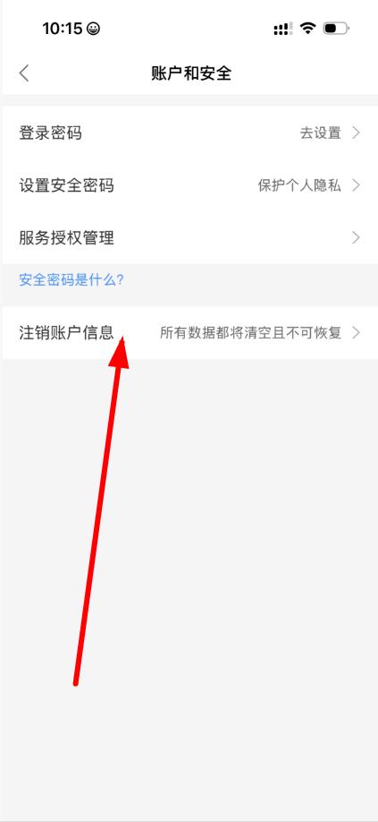 4、在賬戶與安全界面,點擊注銷賬戶信息選項,進入注銷賬戶信息頁面。