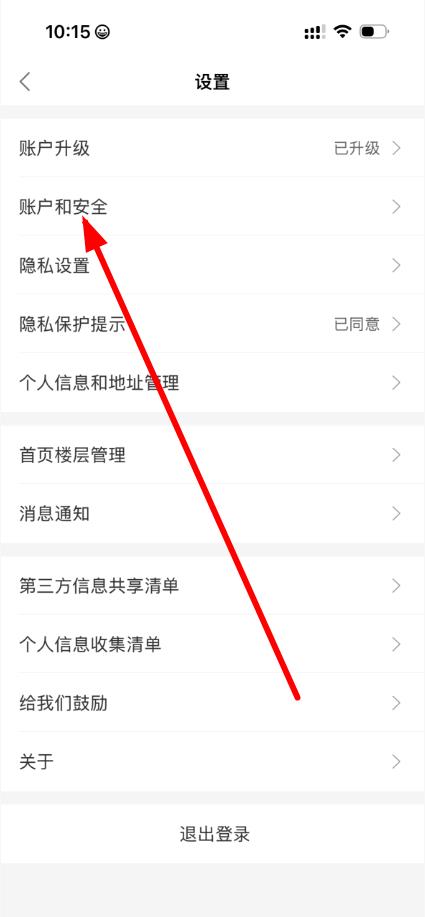 3、在設(shè)置頁面中,點擊賬戶和安全選項,進入賬戶與安全界面。
