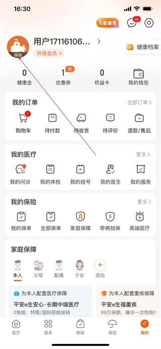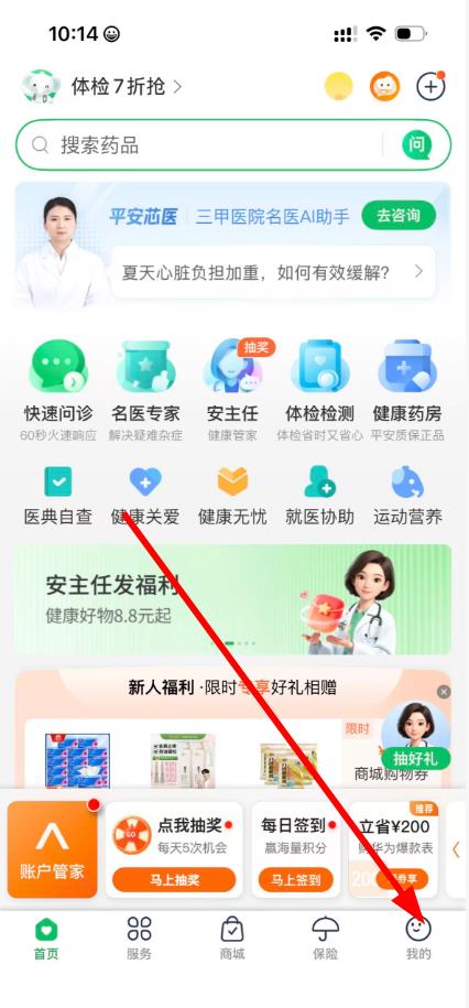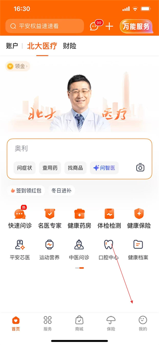 1、在平安好醫(yī)生App首頁點擊底部的我的選項,進入個人中心頁面。
