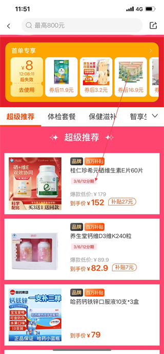 2、進入百億補貼后,點擊想要購買的藥品,進入藥品詳情頁。