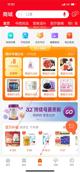 1、打開平安好醫(yī)生APP,進入商城頁面,進行瀏覽。