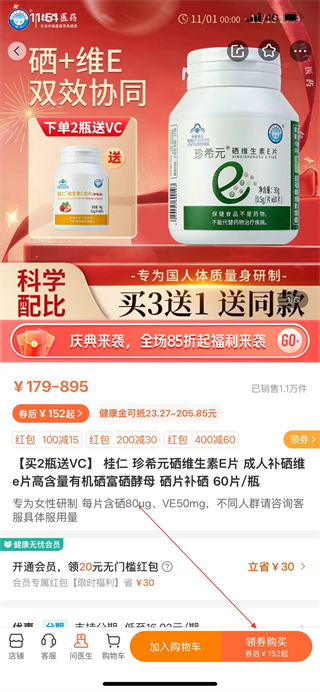 3、在藥品詳情頁點擊領(lǐng)券購買,進行結(jié)算,即可完成買藥操作。