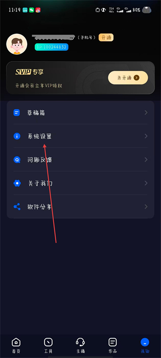 1、打開AI配音軟件,在我的頁面,找到并點擊設(shè)置圖標(biāo)。