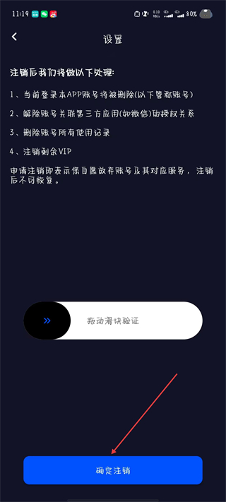 4、滑動下方滑塊驗證,然后點擊確定注銷即可注銷成功。