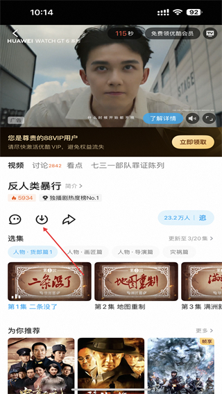 1、在優(yōu)酷視頻首頁找到目標(biāo)視頻,點擊進(jìn)入該視頻的播放頁面。