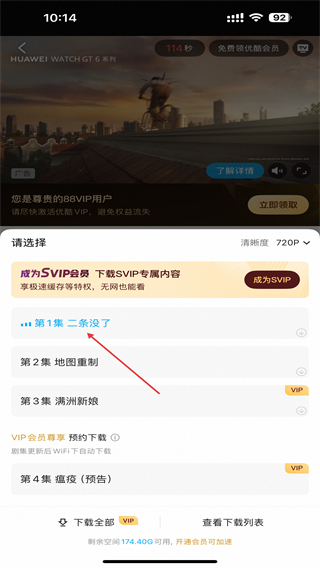 3、在下載界面中,勾選需要下載的劇集集數(shù),同時可選擇清晰度即可。