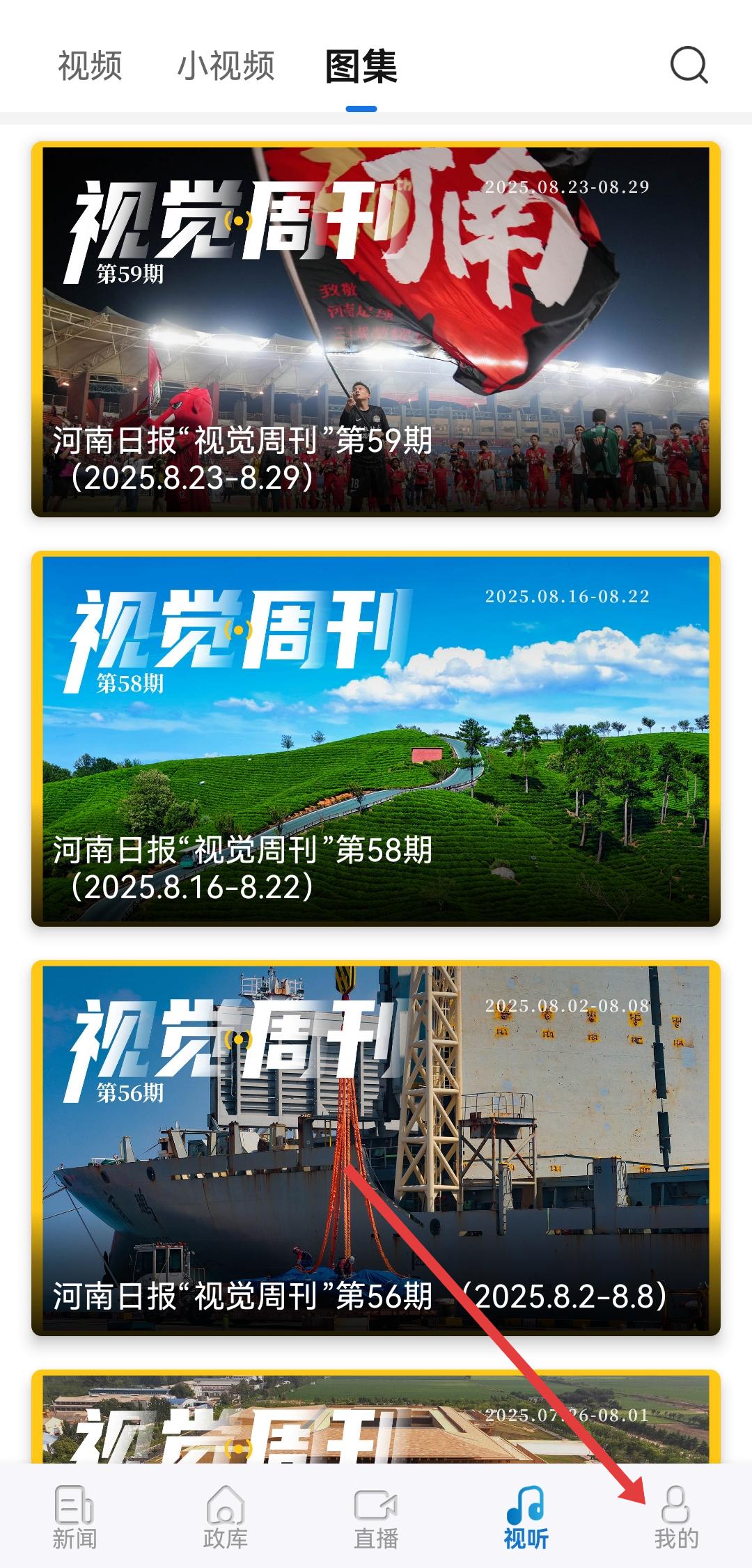 1、打開河南日報APP,需要點擊底部導航欄的我的,進入個人頁面。