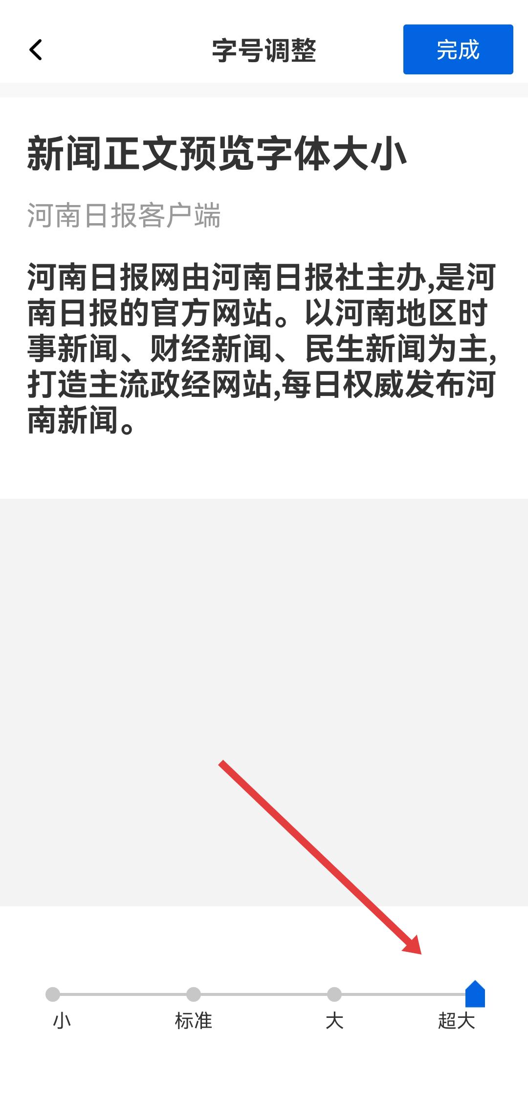 3、通過滑動底部的字號滑塊,調(diào)整到合適的字體大小后,點擊完成即可設置字體大小。