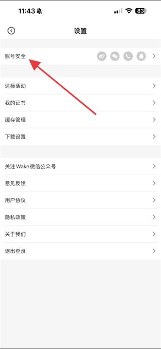 3、在設置界面里,點擊賬號安全選項,進入賬戶安全頁面。