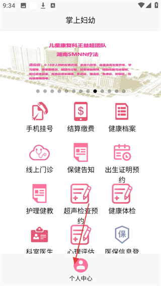 1、打開成都掌上婦幼app,在首頁點(diǎn)擊底部導(dǎo)航欄中的個(gè)人中心。