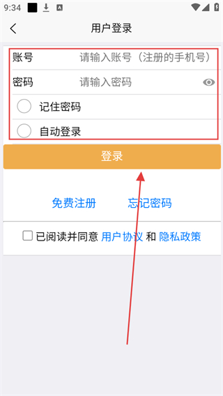 3、在用戶登錄頁面,示輸入手機(jī)號(hào)等相關(guān)信息,輸入賬號(hào)密碼點(diǎn)擊登錄。