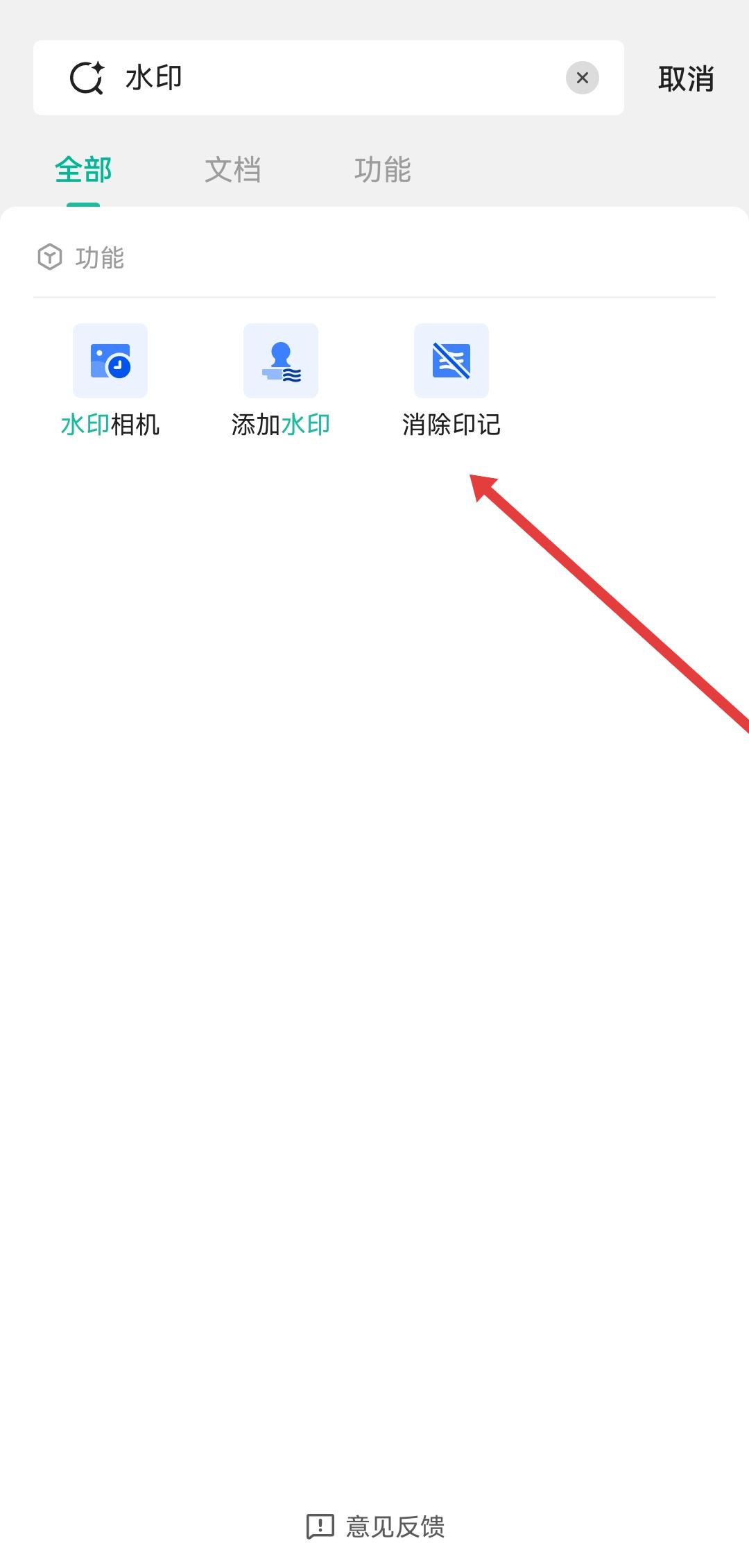 2、在搜索結(jié)果中,找到并點(diǎn)擊消除印記的功能選項(xiàng),進(jìn)入圖片的選擇界面,選取需要去水印的圖片。