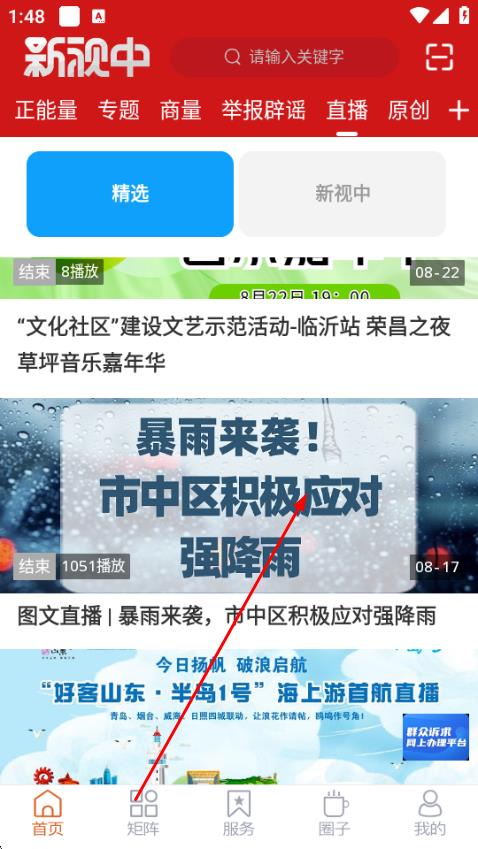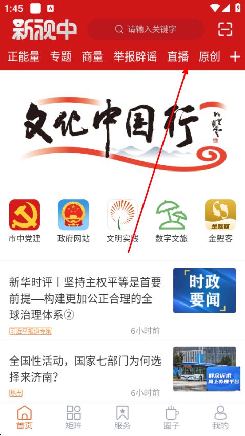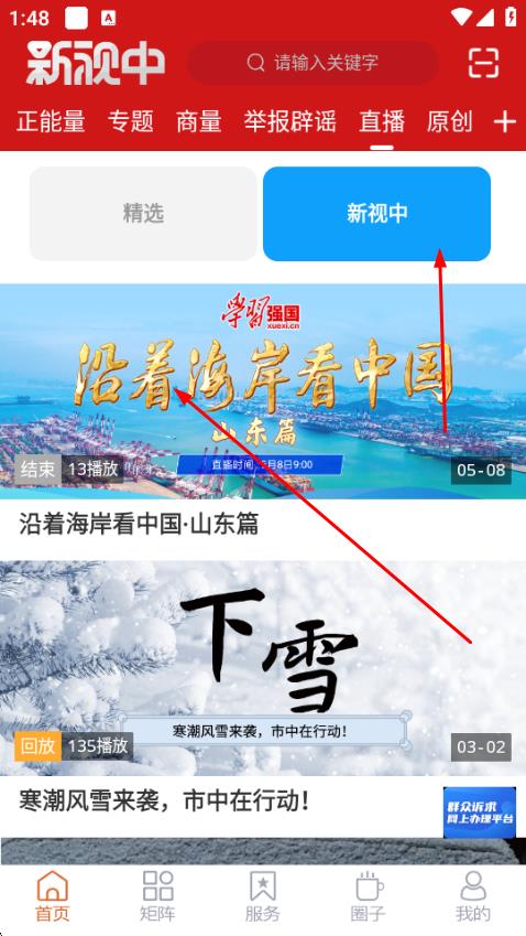 1、打開新視中App,點擊頂部導(dǎo)航欄處的直播。