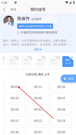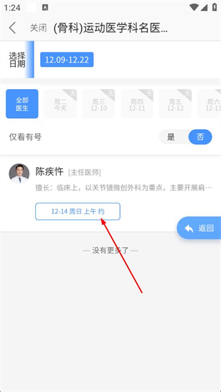 3、在醫(yī)生列表頁面,選擇目標(biāo)醫(yī)生并點擊對應(yīng)預(yù)約時段。