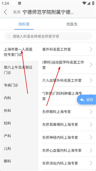 2、在科室選擇頁面,選擇目標(biāo)科室。