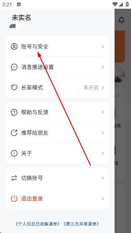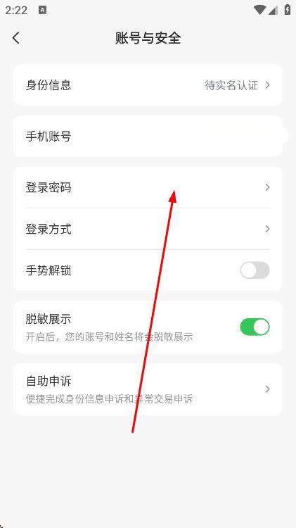 3、進入賬號與安全頁面后,點擊登錄密碼選項。