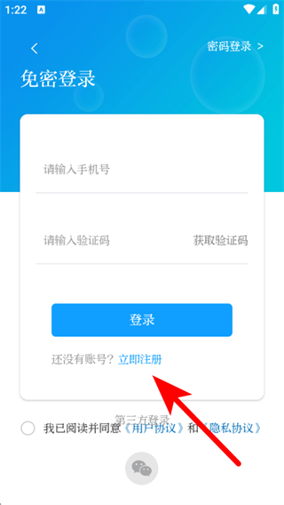 3、在登錄注冊(cè)的頁面,點(diǎn)擊立即注冊(cè),進(jìn)入注冊(cè)的頁面。