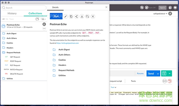 postman mac版是蘋果電腦上的一款Chrome擴展插件,能發(fā)送何類型的HTTP請求和Web API調(diào)試,同時用戶可以添加或者管理多個網(wǎng)站用戶啟動Postman的時候就能自動打開相應的設置。作為chrome插件類產(chǎn)品中的代表產(chǎn)品之一,綠色資源網(wǎng)小編為大家?guī)砉俜阶钚掳媾叮?/p>