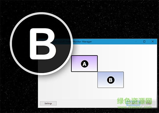 1.打開 Monitor Manager,拖動(dòng)屏幕上的 A B 為現(xiàn)實(shí)中的正確位置,而屏幕上大大寫的字幕就是這臺(tái)電腦的標(biāo)示。之后,鼠標(biāo)就可以在兩者連接的地方穿行了。