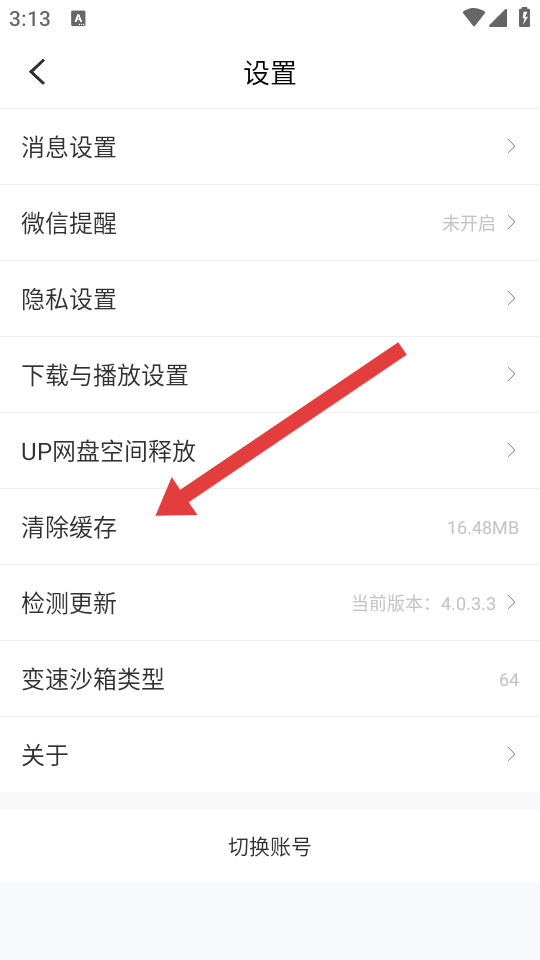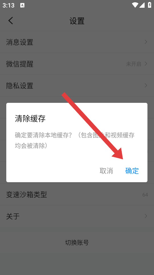 3、在設(shè)置的界面,點(diǎn)擊清除緩存選項(xiàng),觸發(fā)緩存清除的確認(rèn)框。