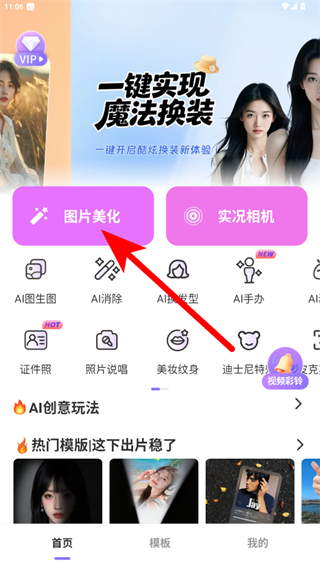 1、打開p圖秀秀應用,點擊圖片美化選項。