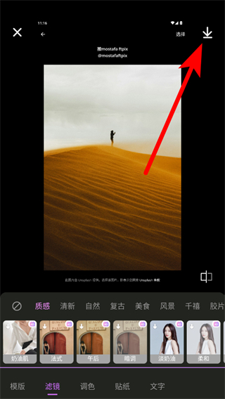 4、圖片美化完成后,點擊右上角的下載按鈕,即可保存美化后的圖片。