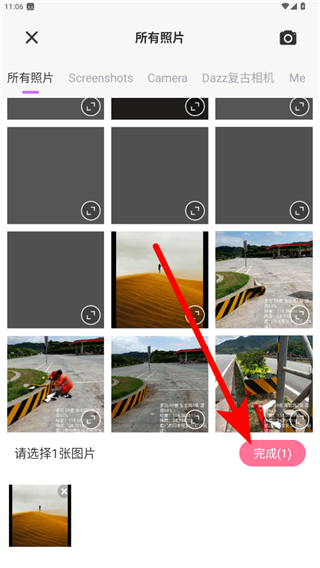 2、在所有照片頁面中,選取需要美化的照片,然后點擊完成按鈕。