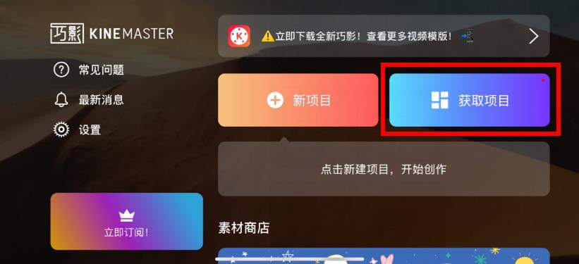 1、打開巧影APP,點擊主界面的獲取項目按鈕。