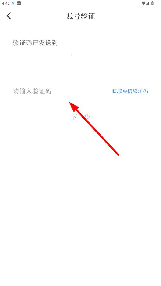3、進入賬號驗證頁面,獲取并輸入短信驗證碼。