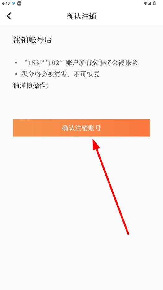 4、在確認注銷頁面,閱讀相關提示后點擊確認注銷賬號,完成賬號注銷。