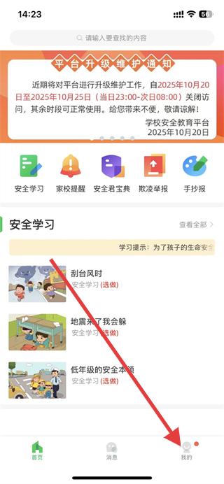 1、打開安全教育平臺,點擊底部導(dǎo)航欄中的我的選項。