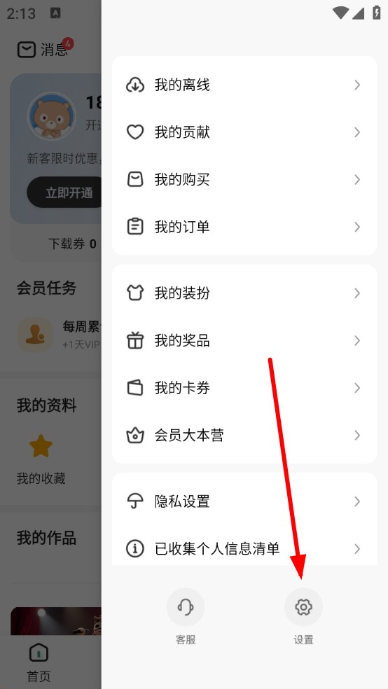 1、打開百度文庫APP,進入個人中心頁面,在頁面下方找到并點擊設置圖標。