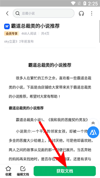 4、在文檔詳情頁面,點擊獲取文檔按鈕,即可查看該內(nèi)容文檔。