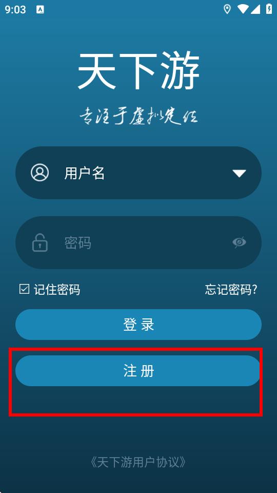 4、信息填寫無誤后,點(diǎn)擊注冊(cè)按鈕,即可完成天下游賬號(hào)注冊(cè)。
