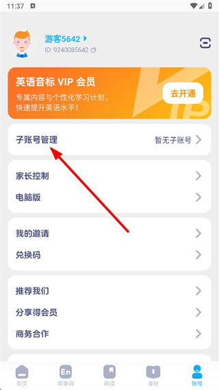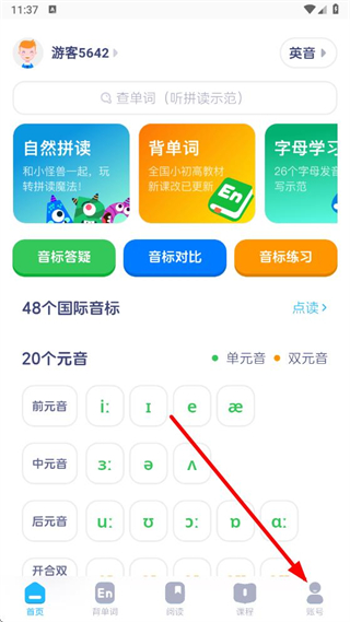1、在英語音標軟件首頁,點擊右下角賬號按鈕,進入賬號管理界面。