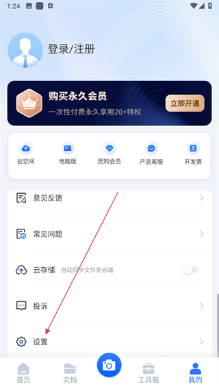 1、打開(kāi)掃描王全能寶應(yīng)用,進(jìn)入首頁(yè)后,點(diǎn)擊頁(yè)面右側(cè)的我的選項(xiàng)。